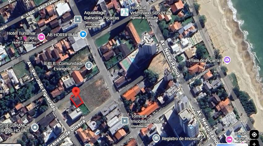 O terreno está localizado em uma área mista comercial e residencial, a apenas uma quadra da praia, com grande potencial de valorização.